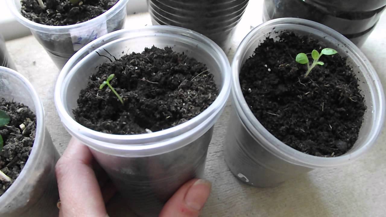 من الضروري الحفاظ على هذه الظروف باستمرار حتى تكوين الفلقات. بمجرد تقشير البذور ، توضع في التربة المحضرة. بعد فترة ، يجب زرع الشتلات في أكواب منفصلة. كل 3-4 أيام يجب وضع أواني الشتلات على حافة النافذة المواجهة للجنوب أو مضاءة بمصباح.