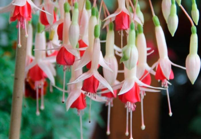 مع العناية المناسبة ، سوف يزهر هذا النبات من الربيع إلى الخريف. زهور الفوشيه عديدة.