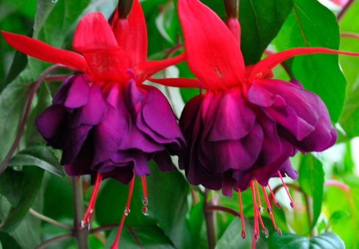 الأزهار ذات لونين: الكأس أحمر ، والكورولا أرجوانية مخملية غنية. ضربات حمراء على كورولا مقبولة. الفوشيه الفودو هو نوع شجيرة يصل ارتفاعه إلى 80 سم. أوراق الشجر خضراء. تزهر مبكرًا. الصنف ليس متقلبًا ومناسبًا للمبتدئين.