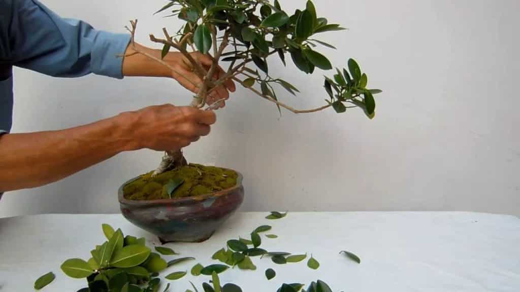 Бонсайът се подрязва на етапи, премахват се пречещите процеси на въздушните корени, долните клони, простиращи се от ствола.