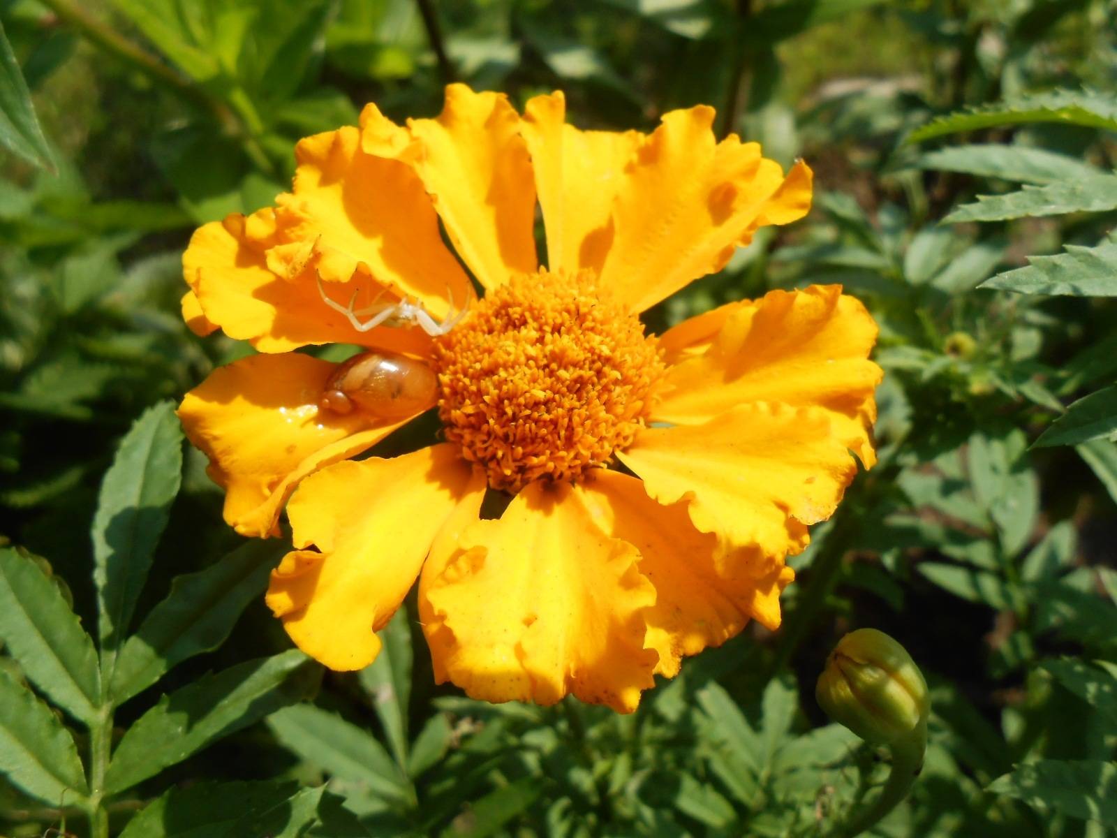 Während der Blüte strahlen Ringelblumen ein ziemlich reiches und spezifisches Aroma aus, das Schädlinge abwehrt. Bei längerem Regen können jedoch Schnecken und Schnecken auf den Büschen auftreten. Um ihr Auftreten zu verhindern, wird empfohlen, einen mit Bleichmittel gefüllten Behälter über den Bereich des Blumengartens zu stellen.