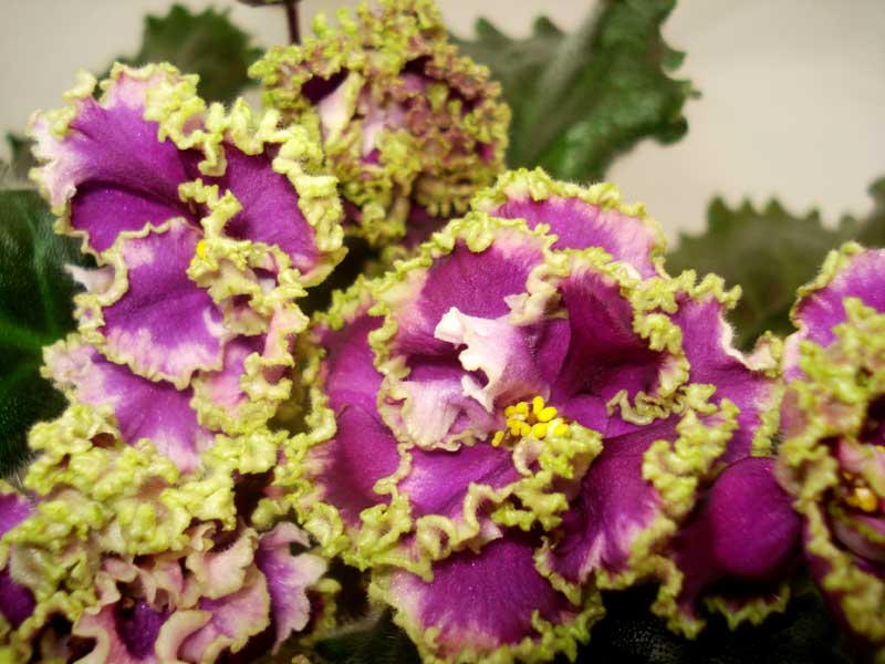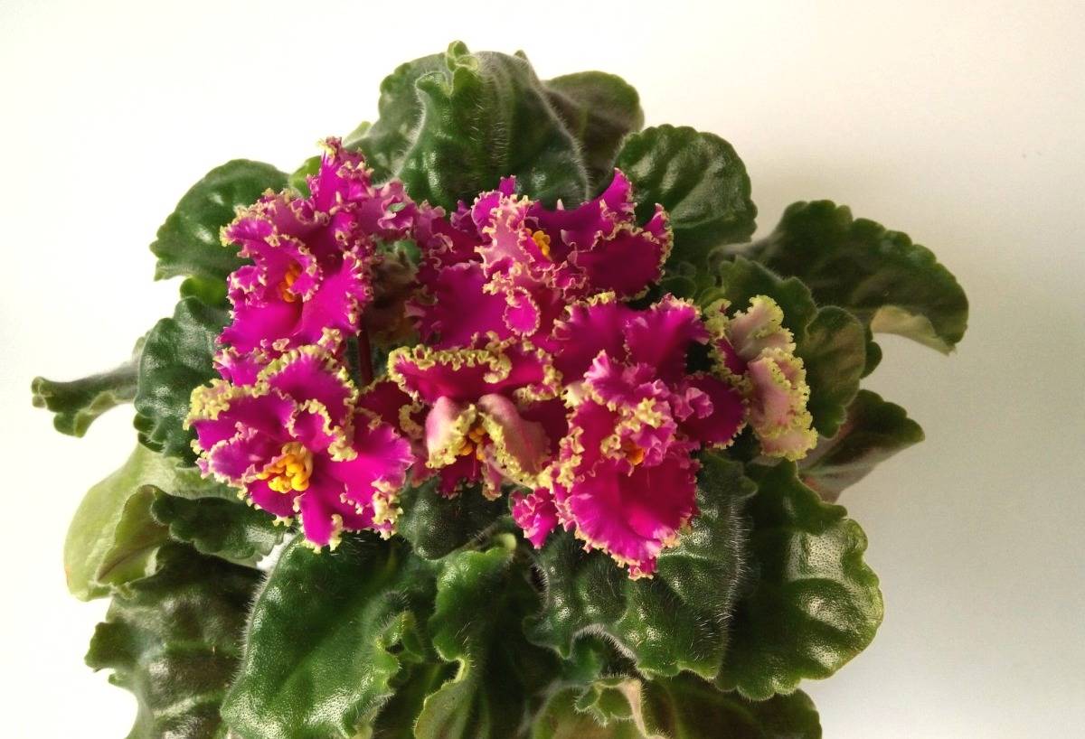 Violet Esmeralda zieht die Augen aller um sie herum an. Sie hat wunderschöne purpurrote Blüten, die aus der Mitte der Rosette wachsen. Ein hellgrüner Rand verläuft entlang der Ränder der gewellten Blütenblätter. Weitere Informationen zum Anbau von Pflanzen zu Hause.
