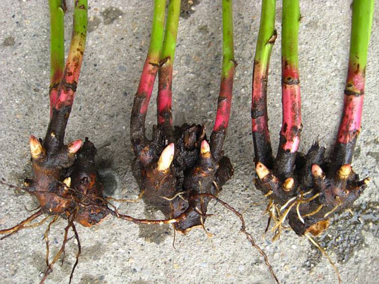 Büsche werden zum Zwecke der Reproduktion transplantiert. Es ist wichtig, es gleichmäßig zu teilen und die Schnitte mit Holzkohle oder Brillantgrün zu verarbeiten. Nach der Zucht werden beide Stecklinge in neue Pflanzgruben mit erneuertem Boden gepflanzt.
