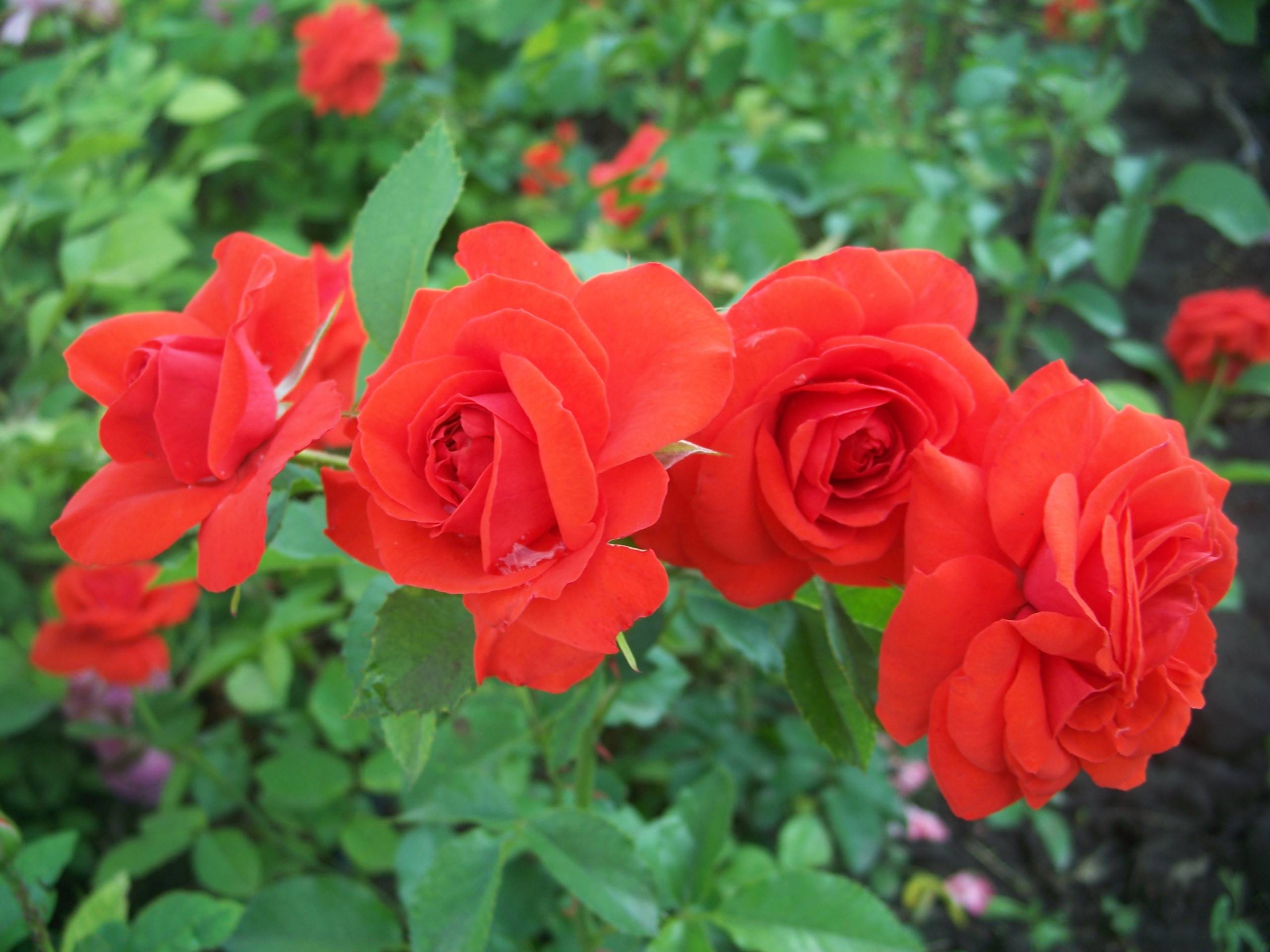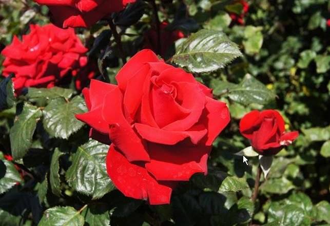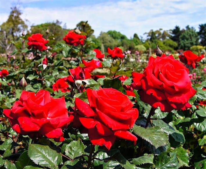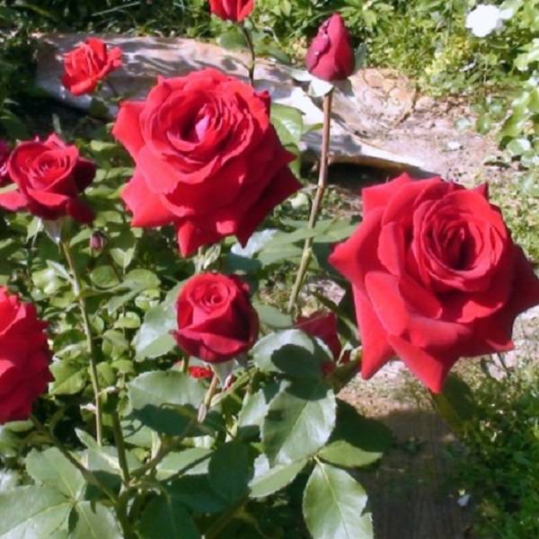 Duftende rote Rosen vertragen leicht Regen und Trockenheit. Die Beschreibung und Eigenschaften dieser Blume enthalten viele Details. Der Stiel erreicht eine Höhe von 80 cm. Der Rosenstrauch wird bis zu 40 cm breit. Gerade Zweige sind mit dunkelgrünen Blättern bedeckt. Der Busch blüht kräftige, üppige Blüten mit einem Durchmesser von 9-10 cm, die wie eine Schüssel geformt sind. Jede Rose besteht aus 35 zarten Satinblättern in scharlachroten, burgunderroten oder hellroten Tönen. Die Knospen öffnen sich langsam, was die Blütezeit verlängert.