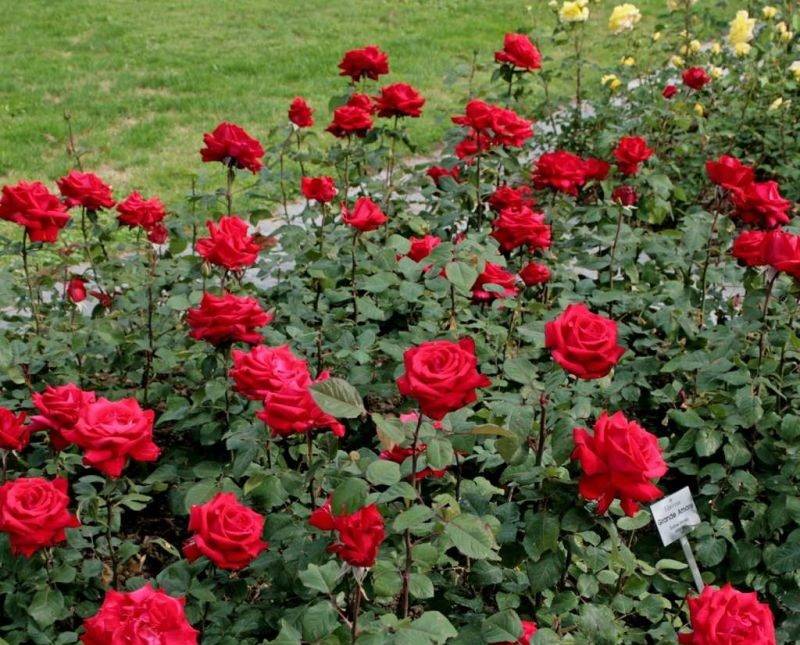 Es ist ratsam, große rote Blumen in der Mitte des Gartens oder Parks zu pflanzen. Sie können für sie das Hauptblumenbeet oder einen anderen Ort wählen, an dem Sie die Aufmerksamkeit des Betrachters auf sich ziehen möchten. Monoplants von Grand Amore sehen sehr beeindruckend aus. Diese Rose kann in Zusammensetzungen mit krautigen Pflanzen oder Wildblumen gezüchtet werden.
