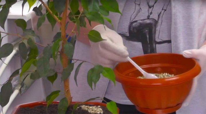 Ако през зимата, когато фикусът е в латентно състояние, той се подхранва с органичен тор, тогава при липса на вегетативни процеси кореновата система ще започне да гние и растението ще умре. Следователно всяка подхранка трябва да се прилага само на етапа на активен вегетационен период - от март до септември.