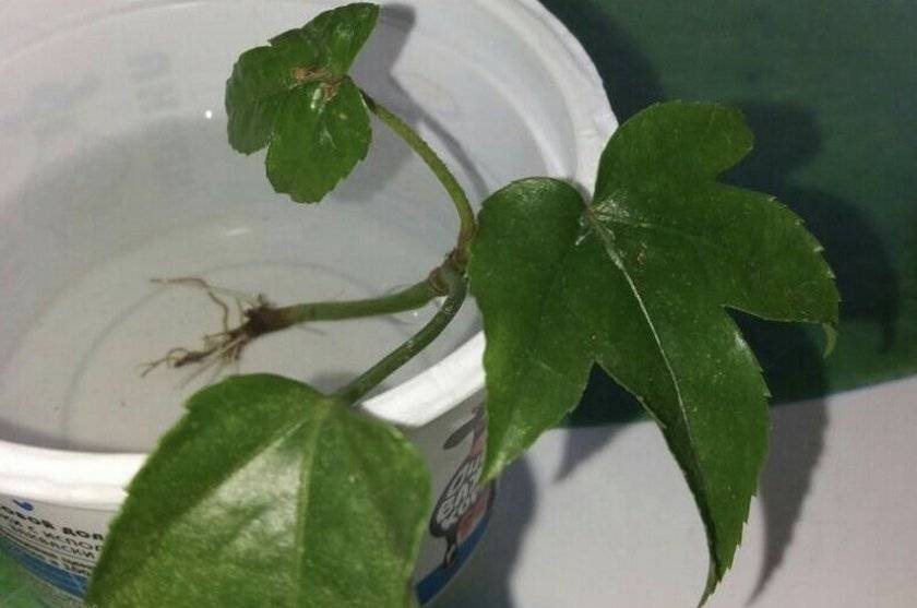 За бързо вкореняване издънката е покрита с найлоново фолио. Трябва да се уверите, че то не влиза в контакт с растението. В противен случай от влагата, образувана от кондензационни капки, листата могат да започнат да гният.