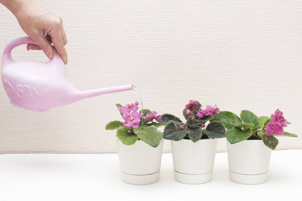 - по-ниско - поставяне на контейнера с растението в съд с вода за не повече от 30 минути. По този начин самата теменужка ще поеме точно толкова вода, колкото е необходимо;