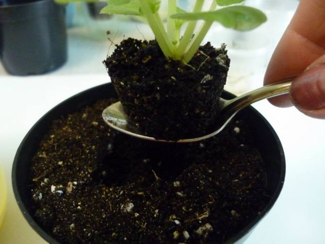 Пресаждането на Saintpaulia трябва да се извършва всяка ранна пролет, тъй като почвата се изчерпва. За трансплантация използвайте специализирана почва за теменужки. Можете също така да използвате пясъчно-глинен разтвор с добавяне на торф и обикновена почва.