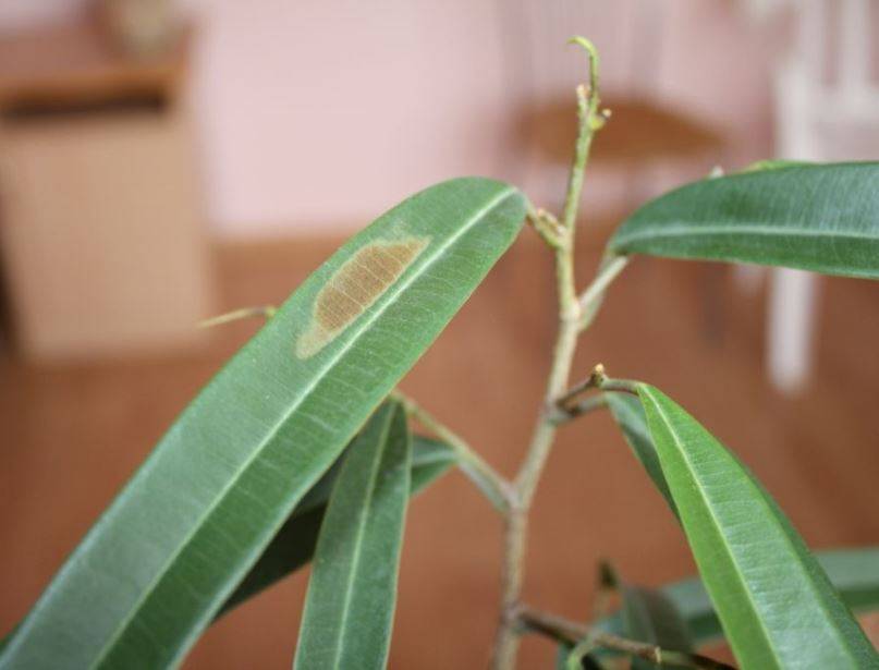 Листата на фикуса могат да загубят цвета си и да отпаднат, когато бъдат нападнати от ножницата и фалшивия щит. Тези насекоми приличат на черни петна, те се отстраняват със сапунена вода и за изтриването им се използва мека кърпа.