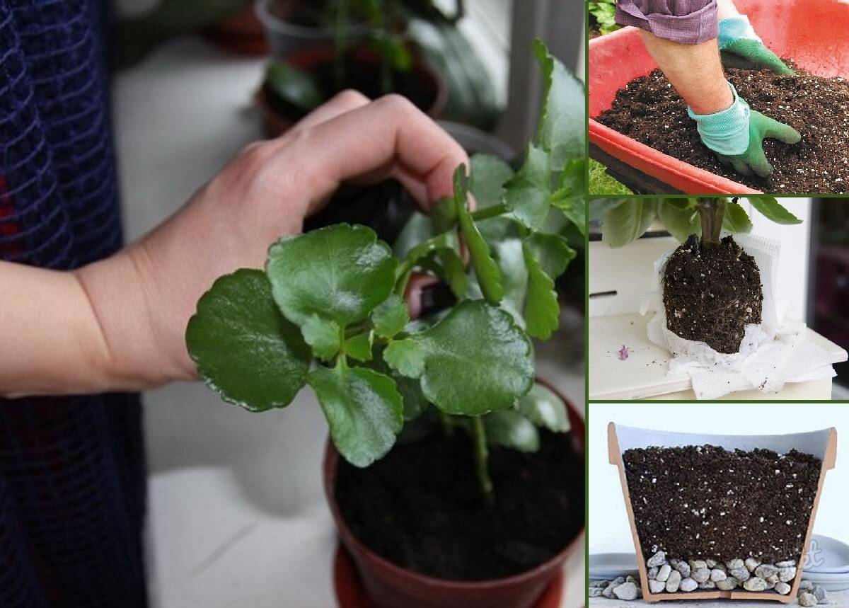 - всяка година през втората половина на март, каланхое трябва да се трансплантира в нов контейнер, с 2-3 пръста по-голям в диаметър от предишния. При пресаждането цветето се отстранява заедно със земната бучка, което свежда до минимум риска от увреждане на корените.