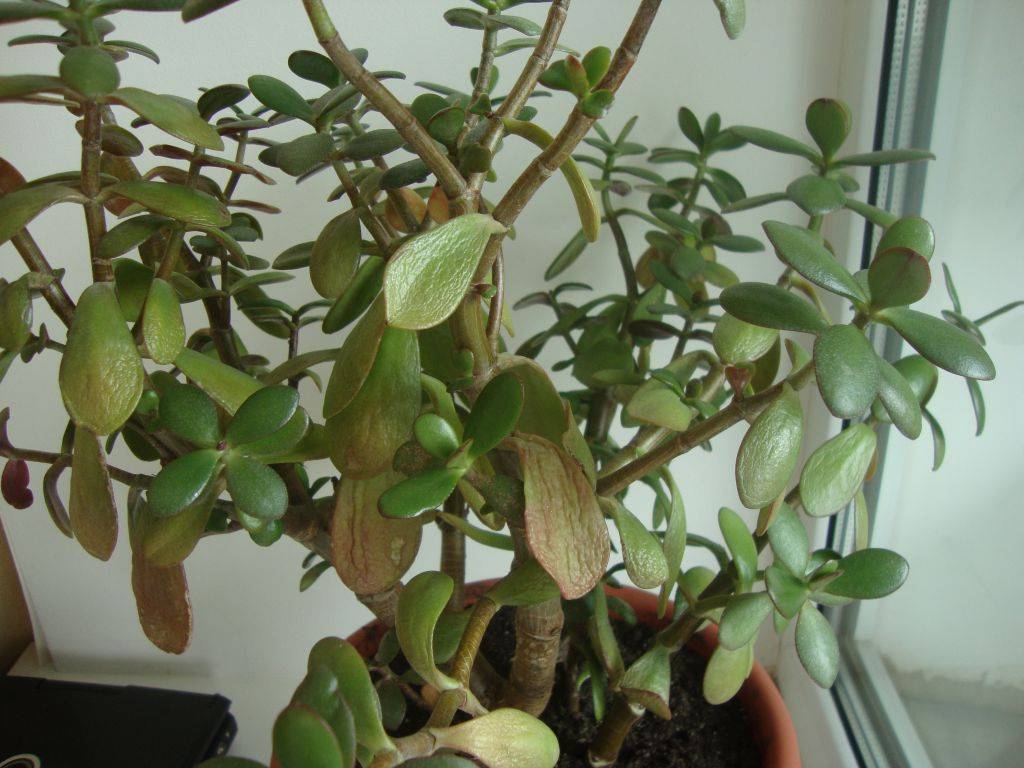 - Червено-лилавата зеленина е признак на небалансирана почва, липса на чист въздух и продължително излагане на пряка слънчева светлина. Когато храните дърво, използвайте тор само за сукуленти и кактуси.