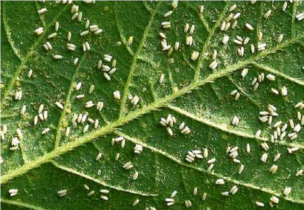 В къщата те често срещат тютюн, оранжерия и цитрусови бели и жълтеникави пеперуди с дължина 2-3 мм. Техните ларви изгризват обратната страна на листата, като по този начин причиняват голяма вреда на цветето. Вредителите абсорбират сокове от листа и стъбла. Отпадъчните продукти се оставят там под формата на лепкави захарни петна и малки яйца.