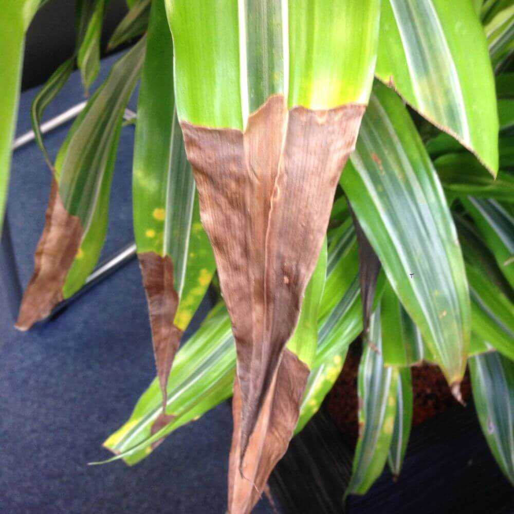 От друга страна, липсата на поливане води до факта, че почвата изсъхва, количеството на необходимите макро- и микроелементи намалява и върховете на листата изсъхват при стайни цветя.