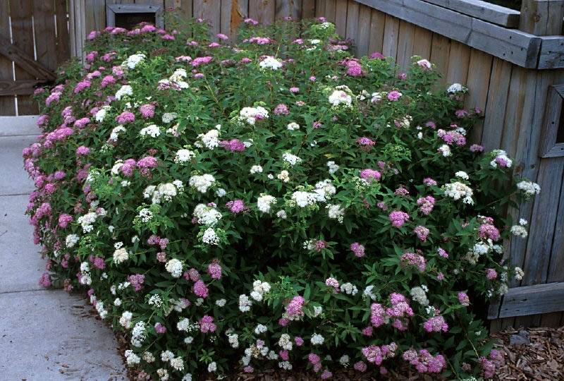 - Жив плет - сортове с височина над 80 см са подходящи за него (сиво, Spiraea bumalda Froebelii, макрофилна спирея и др.). Редове храсти, засадени близо един до друг, помагат да се зонира територията на градината, като се подчертават места, които са различни по своята функционалност.