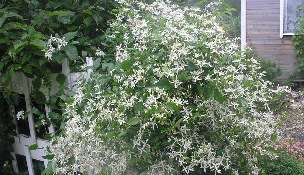 - Изгаряне на клематис (Clematis flammula). Представителите на тази секция са не само издръжливи на зимата, но и цъфтят удивително красиво и обилно. Въпреки факта, че цветята са малки, те покриват растението толкова плътно, че листата са почти невидими под тях. В същото време те имат меден аромат.