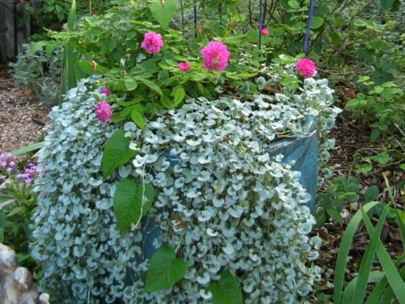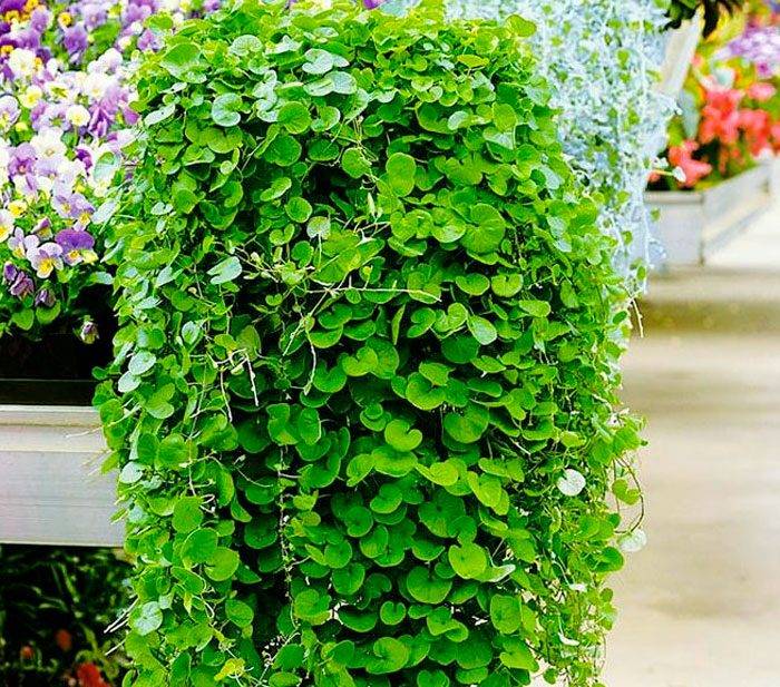- dichondra Ασημένιος καταρράκτης. Για απλά φυτά σε γλάστρες, αυτή είναι η πιο συχνά χρησιμοποιούμενη ποικιλία. Αυτό εξηγείται από το γεγονός ότι αυτά τα φυτά χρειάζονται νερό λιγότερο από όλα τα άλλα. Το λουλούδι είναι επίσης γνωστό ως υφέρπουσα διχόντρα. Οι εκπρόσωποι της ποικιλίας διακρίνονται για την εντυπωσιακή εμφάνισή τους και είναι σε θέση να διακοσμήσουν κάθε γωνιά και κήπο. Ταυτόχρονα, η καλλιέργεια του dichondra Silver Falls δεν προκαλεί δυσκολίες, καθώς το φυτό είναι εντελώς απαράδεκτο.