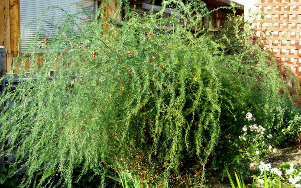 Το δεύτερο όνομα είναι πικάντικο σπαράγγι, φροντίζοντας να μην δημιουργεί δυσκολίες ακόμη και για έναν αρχάριο ανθοπωλείο. Αναπτύσσεται με τη μορφή θάμνου. Χαρακτηριστικό γνώρισμα είναι ο σχηματισμός βλαστών αναρρίχησης. Η επιφάνεια των στελεχών είναι λεία, λαμπερή. Ανθίζει σε τσαμπιά, το καθένα με 3-12 κομμάτια λουλουδιών. Οπτικά μοιάζει με φτέρη. Μετά την ανθοφορία, το φρούτο είναι σκούρο μπλε και σφαιρικό σχήμα. Η διάμετρος κάθε τέτοιου κουτιού είναι κατά μέσο όρο 6 mm.