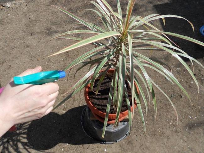 Για καλύτερη ανάπτυξη και καθαρισμό από τη σκόνη, μπορείτε να ψεκάσετε το dracaena με ζεστό νερό ή να χρησιμοποιήσετε ένα ζεστό ντους μία φορά την εβδομάδα. Είναι καλύτερα να χρησιμοποιείτε ψεκαστήρες. Αυτή η διαδικασία μπορεί να χρησιμοποιηθεί εάν δεν υπάρχει αρκετή υγρασία και τα άκρα των φύλλων στεγνώσουν.