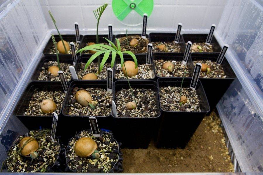 Κατά την προετοιμασία για σπορά, οι σπόροι εμποτίζονται σε ζεστό νερό για 1 ημέρα, μετά την οποία τοποθετούνται ρηχά στο έδαφος. Το δοχείο καλύπτεται με αλουμινόχαρτο και τοποθετείται σε ζεστό μέρος με θερμοκρασία 30-32 γραμμάρια. - δημιουργείται ένα λεγόμενο θερμοκήπιο. Η διαδικασία βλάστησης διαρκεί κατά μέσο όρο 2 μήνες.