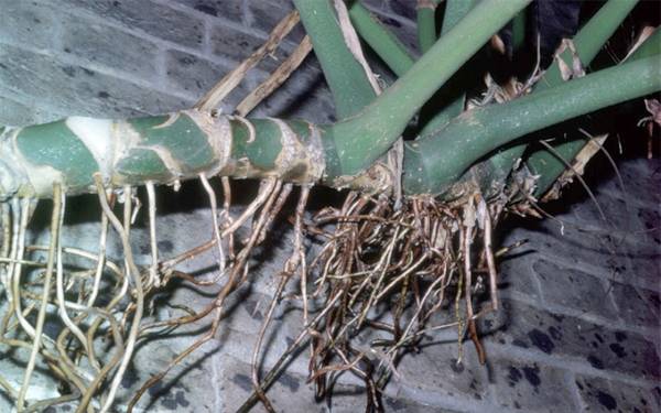 Όταν οι ερευνητές, περπατώντας στην αμερικανική ακτή, είδαν τεράστια δέντρα με περικοπές στα φύλλα, κάλεσαν το εύρημα "τέρατα". Οι ξένοι βίωσαν έναν ιδιαίτερο φόβο, παρατηρώντας ένα τέτοιο φαινόμενο χαρακτηριστικό του monstera όπως οι ρίζες του αέρα. Αφού σχηματίστηκε σε όλο το μήκος του κορμού, η ρίζα, έχοντας φτάσει στο έδαφος, ριζώθηκε εκεί για να συνεχίσει την ανάπτυξη. Μερικές ρίζες εμφανίστηκαν σε μεγάλα υψόμετρα και συνέχισαν να αναπτύσσονται, φτάνοντας σε οποιαδήποτε υποστήριξη που εμπόδισε. Σχεδόν το ίδιο συμβαίνει και στο διαμέρισμα.