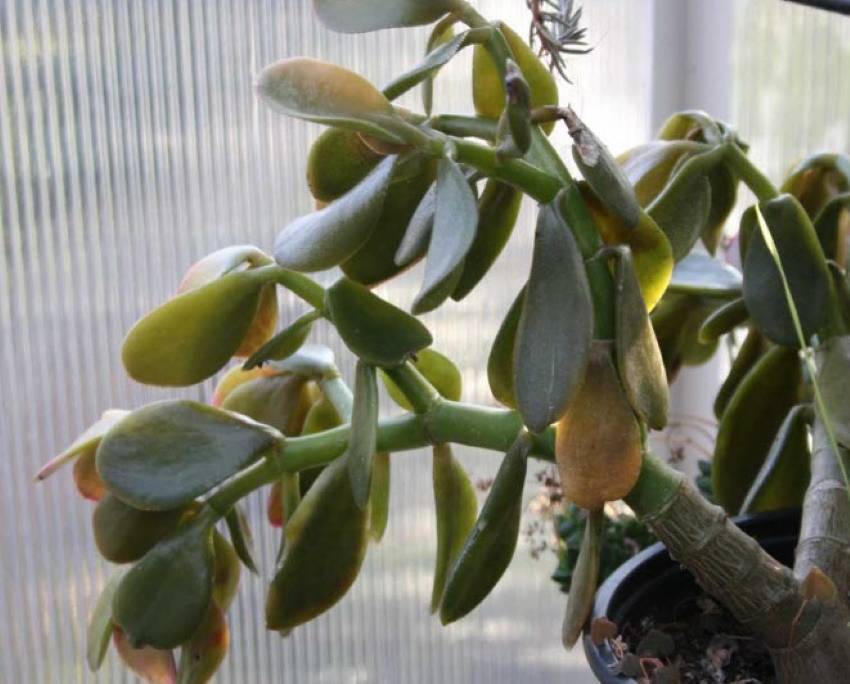 Το Crassula μπορεί να ρίξει τα φύλλα του το καλοκαίρι για διάφορους λόγους. Πρώτον, πάρα πολύ άγχος λόγω της ζέστης, μακράς περιόδου ξηρασίας, έλλειψης ποτίσματος και σίτισης.