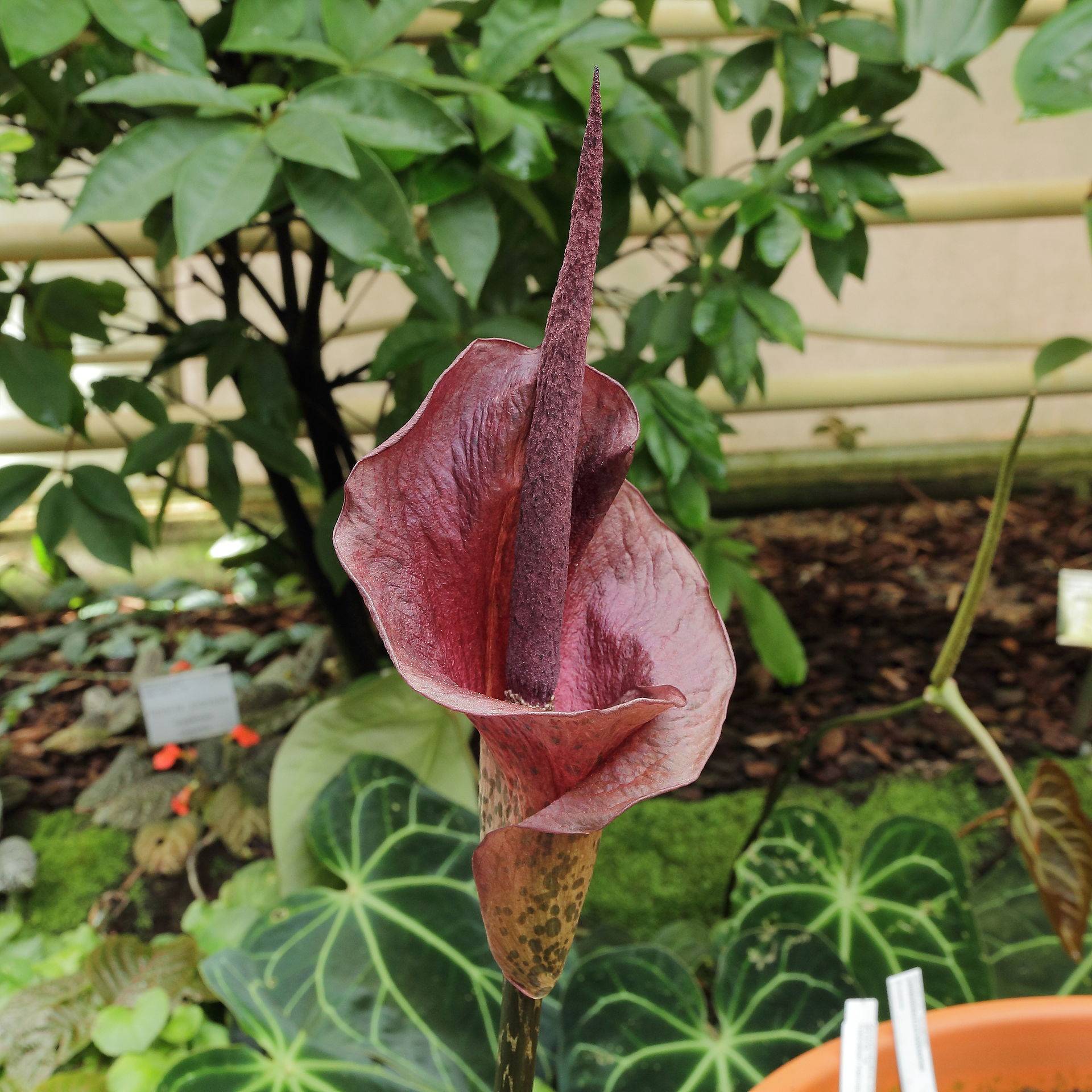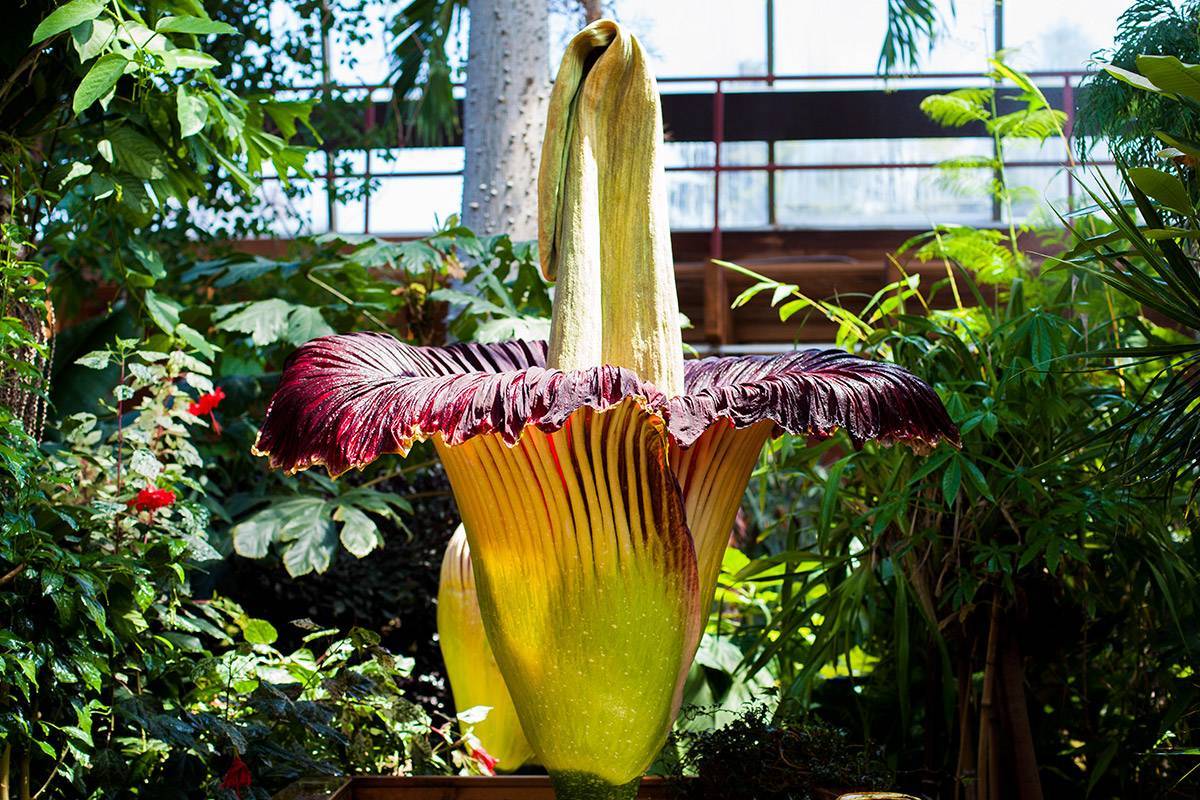 Amorphophallus titanic - το ψηλότερο και μεγαλύτερο είδος. Το λουλούδι αυτού του άμορφου είναι το μεγαλύτερο στον κόσμο. Το αυτί έχει ύψος περίπου 2 m, περιτριγυρισμένο από μεγάλη ταξιανθία από μπορντό, το βάρος του κονδύλου είναι περίπου 20 kg. Είναι πολύ δημοφιλές, αλλά είναι αδύνατο να αναπτυχθεί ένα τέτοιο άμορφο λουλούδι στο σπίτι.