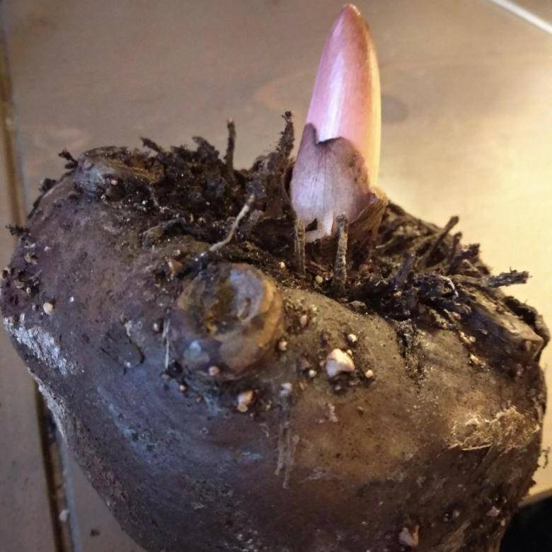 - Αφού φύγει από την αδρανή περίοδο, το λουλούδι απελευθερώνει 1 πολύ μεγάλο φύλλο σε ένα μακρύ μίσχο (το ύψος του μπορεί να φτάσει τα 1,5 m).
