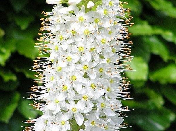 - Το Eremurus Himalaicus (Eremurus Himalaicus) ξεχωρίζει με φαρδιά και φωτεινά πράσινα φύλλα, λευκά χιονισμένα πέταλα. Μεγαλώνει έως 2,5 μέτρα, θεωρείται μία από τις πιο διακοσμητικές ποικιλίες.