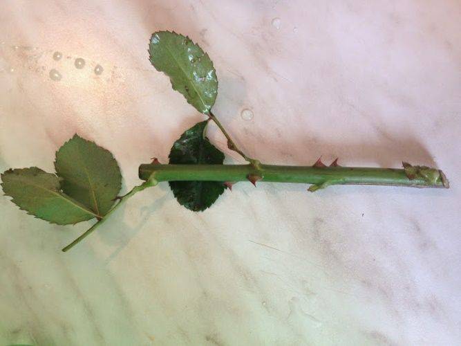 Μετά την πραγματοποιηθείσα διαδικασία, το κάτω μέρος υποβάλλεται σε επεξεργασία με ένα διεγερτικό ανάπτυξης για τις ρίζες, φυτεύεται σε υγρό έδαφος σε θερμοκρασία 18-20 ºС και καλύπτεται με ένα υμενικό υλικό μέχρι την εμφύτευση. Συνήθως χρειάζονται 20-25 ημέρες.