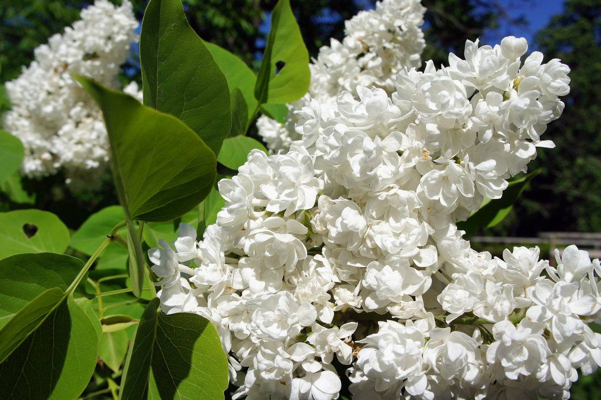 Τα άνθη είναι λευκά λιλά ή λευκά στο χιόνι και αποπνέουν πλούσιο άρωμα. Οι ταξιανθίες μήκους περίπου 10 cm και πλάτους όχι περισσότερο από 7,5 cm σχηματίζονται από τους πλευρικούς άνω οφθαλμούς.