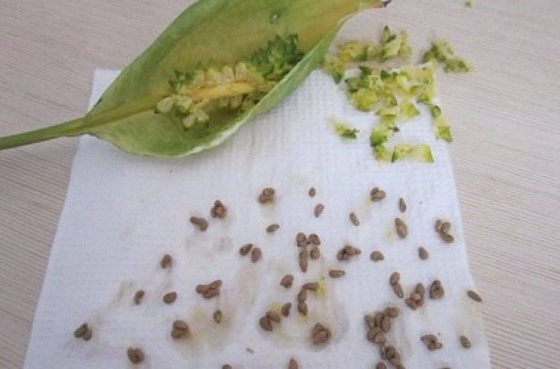 Η αναπαραγωγή από σπόρους σπαθίφυλλου είναι η πιο επίπονη διαδικασία. Αυτή η εκδήλωση απαιτεί πολύ χρόνο και προσπάθεια. Συνιστάται η αγορά σπόρων προς σπορά σε εξειδικευμένο κατάστημα. Σε αυτήν την περίπτωση, θα πρέπει να προσέξετε τη διάρκεια ζωής: οι μισοί ακόμη και φρέσκοι σπόροι μπορεί να μην βλαστάνουν.
