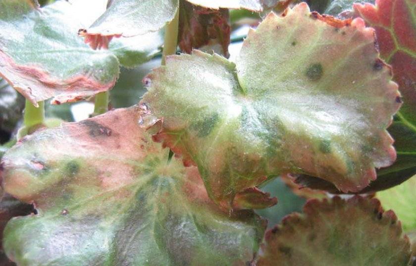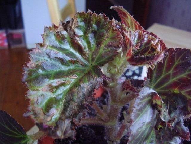 Γκρίζα σήψη εμφανίζεται στα φύλλα και τους μίσχους του φυτού, καλύπτοντάς τα με μια πρασινωπή άνθιση. Σταδιακά, η λοίμωξη μπορεί να μετακινηθεί στα λουλούδια της μπιγκόνιας, θα αρχίσουν να μαραίνονται, γι 'αυτό απαιτείται μια γρήγορη απόκριση. Συνιστάται η επεξεργασία του φυτού με βενζύλιο. Είναι επίσης απαραίτητο να μεταφέρετε το λουλούδι σε ένα στεγνό, δροσερό δωμάτιο.