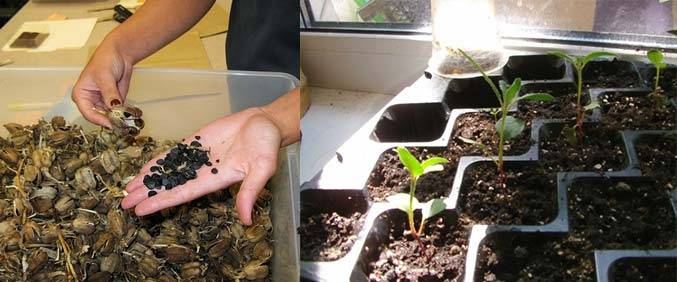 Πρέπει να φυτευτεί αμέσως στο θρεπτικό έδαφος σε βάθος όχι μεγαλύτερο από 5 mm. Το δοχείο σπόρου καλύπτεται με γυαλί ή σακούλα. Αερίστε καθημερινά και αφαιρέστε τη συμπύκνωση. Η βέλτιστη θερμοκρασία για τα φυτά είναι 25 ° C.