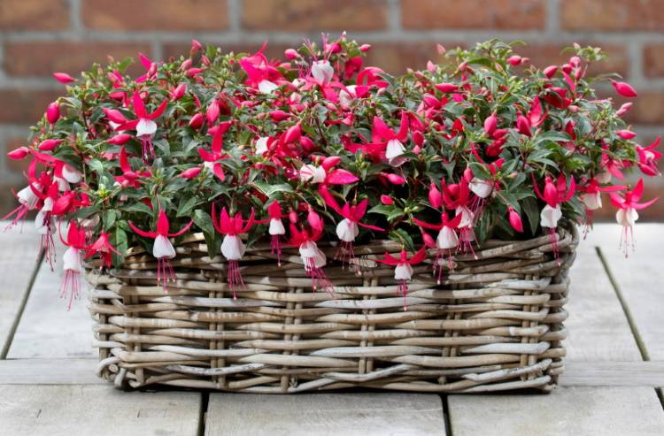 For normal development, fuchsias must grow in clay, earthenware containers with drainage holes or in plastic, but inserted into a thick-walled planter. Depending on the type of flower, the shape of the pot is chosen. Sprawling bushy forms are grown in wide flower beds. For ampelous plants, high capacities are selected.