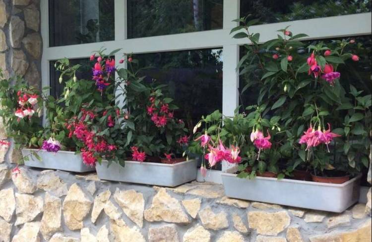 The advantages of outdoor cultivation of fuchsias in pots compared to placement in hanging pots are obvious: the plants do not suffer from gusts of wind, their roots do not overheat, and it is easier to water them.
