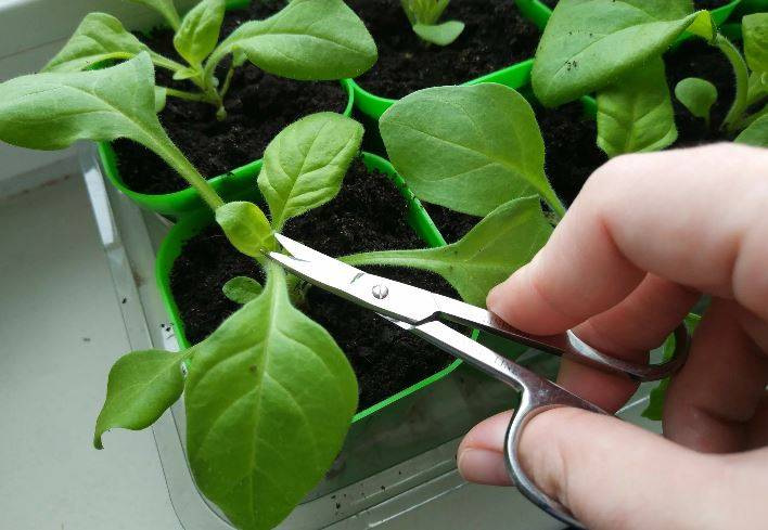 When the young seedlings of petunia have grown up, many have the question of how to pinch the petunia correctly. Pinch the potted plant as early as possible. It is better to start the procedure when the number of leaves is from 4 to 7 pieces. This happens about 2 months after germination.