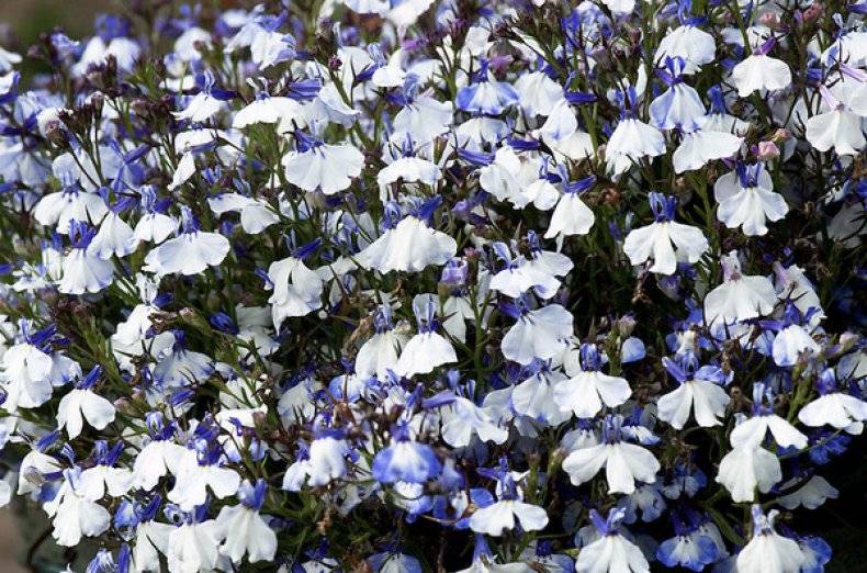 Lobelia ampelous of this variety, when flowering, looks like a carpet of small buds. It is the most common domestic variety. Its flowers have two shades - a white center and pale blue petals. The stems, reaching a length of 30 cm, form a compact and beautiful bush. The leaves on them have an oblong shape and a green tint. This species is highly frost-resistant and likes to be on the lighted side of the house.