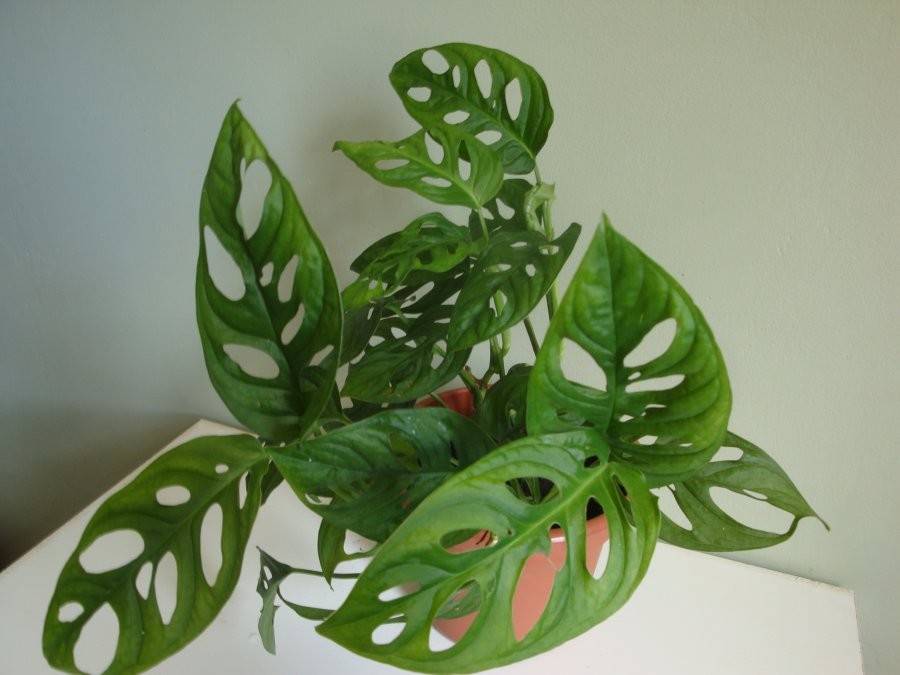 The Latin name for this species is monstera obliqua. The plant is not capricious, therefore it does not require special care, but at the same time it has a very beautiful appearance. It has light green lanceolate leaves with asymmetrical cuts. The length of the leaf plates does not exceed 30 cm. This ampelous type of dwarf monstera is grown in hanging pots or on special supports, as it tends to grow strongly.