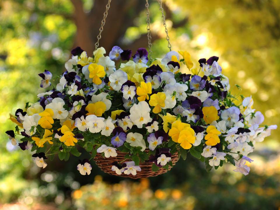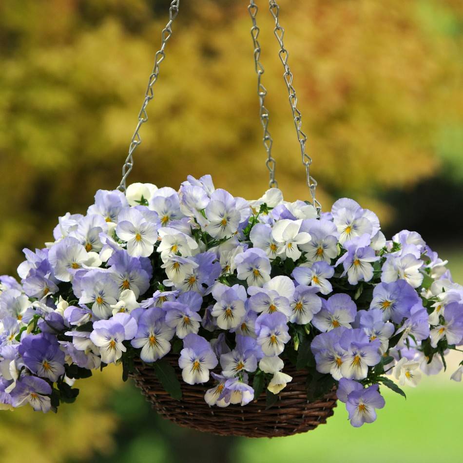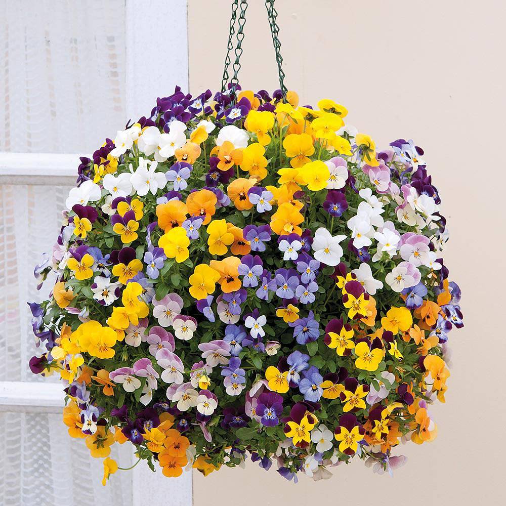 Ampel pansies can be grown in vases with a volume of 2-4 liters. Containers larger than this volume are dangerous (they can break off under the weight) and do not look very nice.Soil suitable for viola is loose, nutritious, with a neutral pH. For example, you can suggest the following composition: