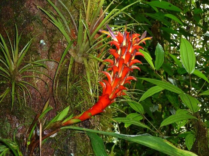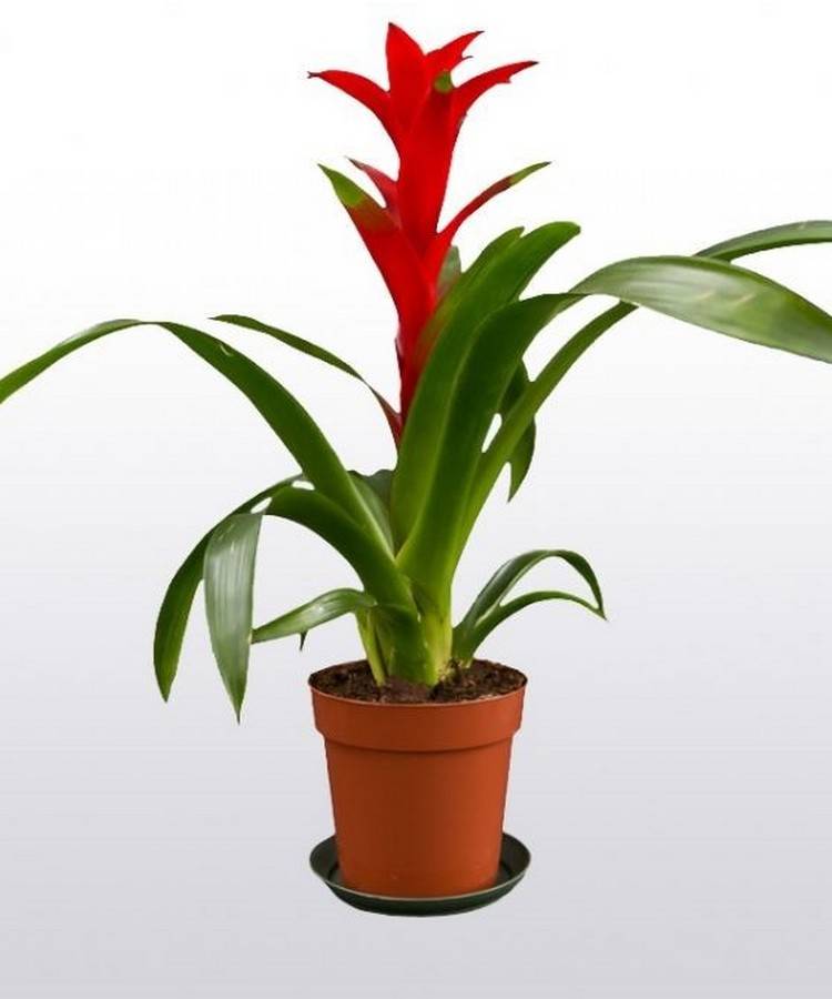 Guzmania is a flower of the Bromeliad family. It is named after the biologist Anastasio Guzman who discovered it. In its natural environment, it grows in India and South America. Favorable conditions for the species are tropics, humid climate. There, plant varieties are found everywhere. In more northern latitudes, florists bring it out in artificial conditions.