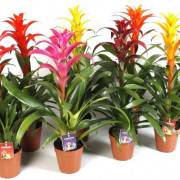 Guzmania mix is not a separate species, but the name of several flowers collected in 1 pot.The inflorescence is less large, therefore it does not have a similar beauty with other species. But this disadvantage is compensated by the presence of colors of different shades.