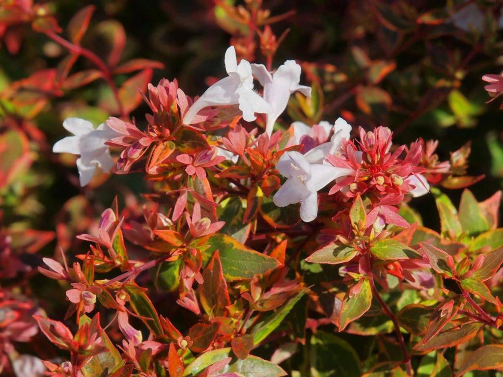 Variegated shrub about 2 m in height, with oval leaves, pointed towards the end. The flowering period is April-November. During the flowering of the fragrant abelia, white flowers appear. This variety is considered semi-evergreen, because after the flowers fall off, the foliage changes to bronze.