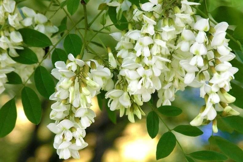 It is a fast growing tree with light green leaves and milky white flowers. Dark brown seed pods appear by September. White acacia blooms from May to June. Acacia is a frost-resistant white shrub, melliferous. Up to 15 kg of fresh honey can be harvested from one tree.