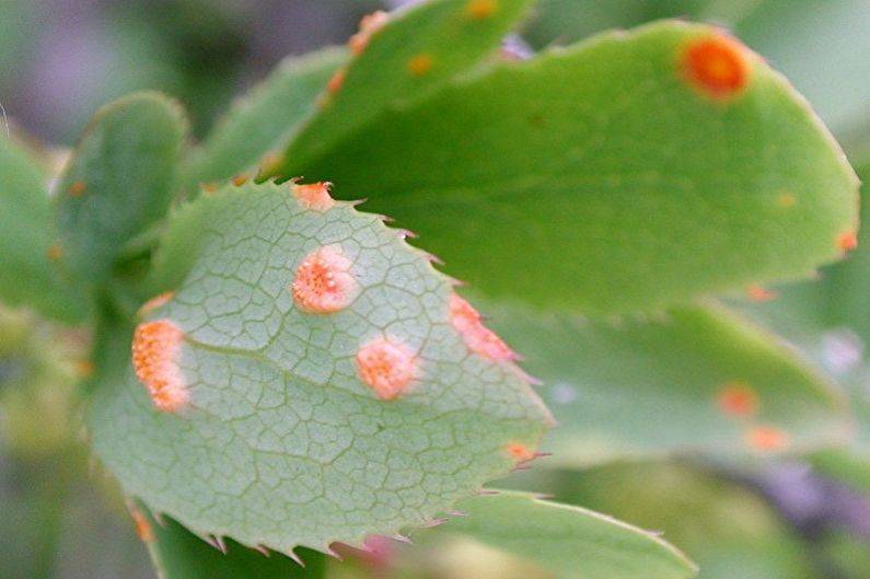Erecta is a healthy variety, but it can also get sick. Most often, the bush suffers from stagnation of water in the soil. Among the diseases, powdery mildew is distinguished, in which a white bloom appears on the aerial part of the bush. Often, barberry gets sick with rust when the leaf plates are covered with yellow-brown spots. Fungicides will help with the disease.