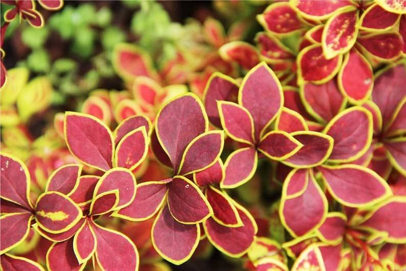 There are a huge number of barberry species. They can have green, yellow, orange and red leaves.