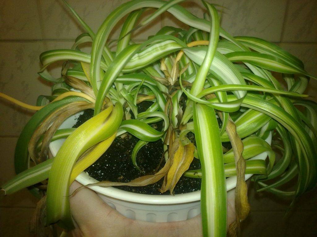 - Getting sunburn. Chlorophytum is very fond of light, it grows well in a lighted room, but chlorophytum crested will feel comfortable only in diffused light. Direct rays of the sun can cause burns. This will cause the leaves to dry out around the edges. To fix the situation, you need to change the location of the pot.