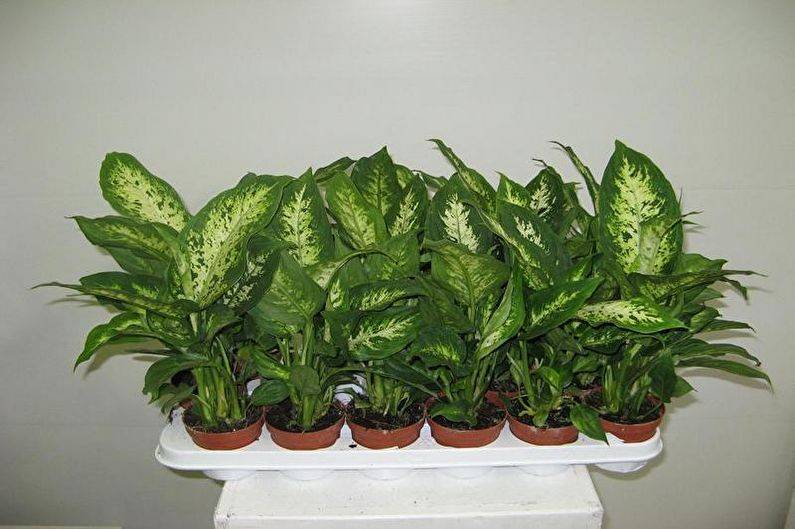 There are many varieties of Dieffenbachia Mix. Differs in light green leaves with patterns of varying intensity, loves light. The variety boasts of its decorative effect, so it can often be found in various public places.