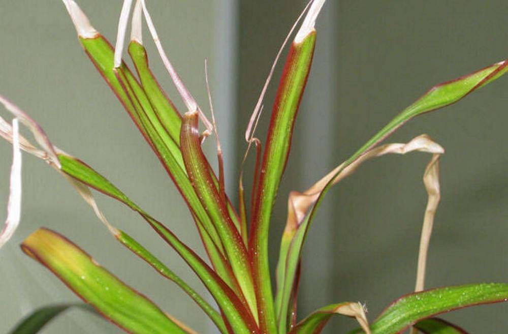 Many are interested in why dracaena leaves curl. Sometimes drying, darkening covers only the tips of dracaena leaves. The root cause of folding is again worth looking for in a lack of moisture, but not only. Here are some more reasons: