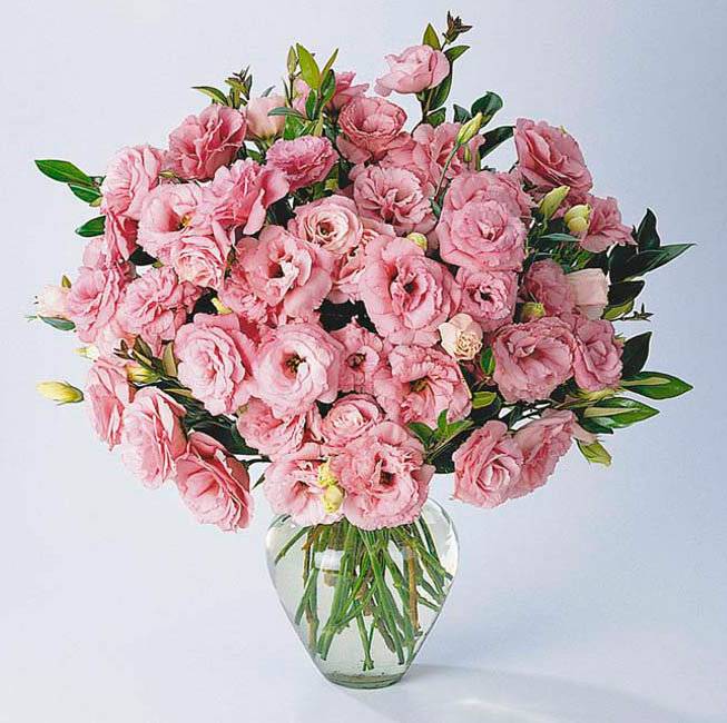 Eustoma (lat. Eustoma, lisianthus) is a flowering plant from the gentian genus with bluish-whitish foliage, as if rubbed with wax, and large tender or double inflorescences in the form of funnels. Inflorescences come in all kinds of shades: white, pinkish, lilac, lilac, with or without a bright border. Until the end, the unopened flowers resemble pink buds, for which the eustoma received another name "Irish rose", and when opened to the end, the inflorescences look just like large poppies. Many inflorescences bloom on one stem, which gives the flower the appearance of a bouquet. The bright, elegant look and long-term storage of cut eustoma flowers annually gains more and more recognition from gardeners. This article describes how to grow an eustoma at home and what kind of follow-up care it will need.